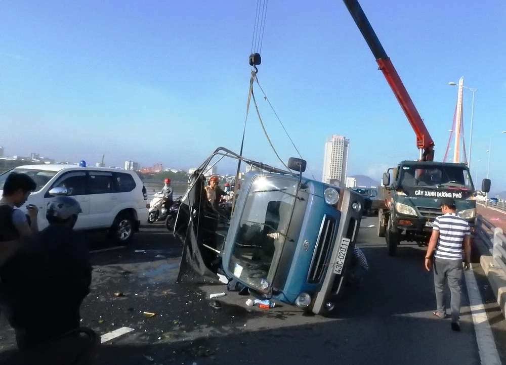 Theo thông tin ban đầu, khoảng 6 giờ 30 ngày 5-12, xe tải loại 1,5 tấn 43C-020.11 chở trái cây chạy trên cầu Trần Thị Lý (Đà Nẵng) hướng từ chợ đầu mối Hòa Cường (quận Hải Châu) đi quận Ngũ Hành Sơn. Khi lên giữa cầu thuộc phường Mỹ An (Ngũ Hành Sơn) thì bị lật.