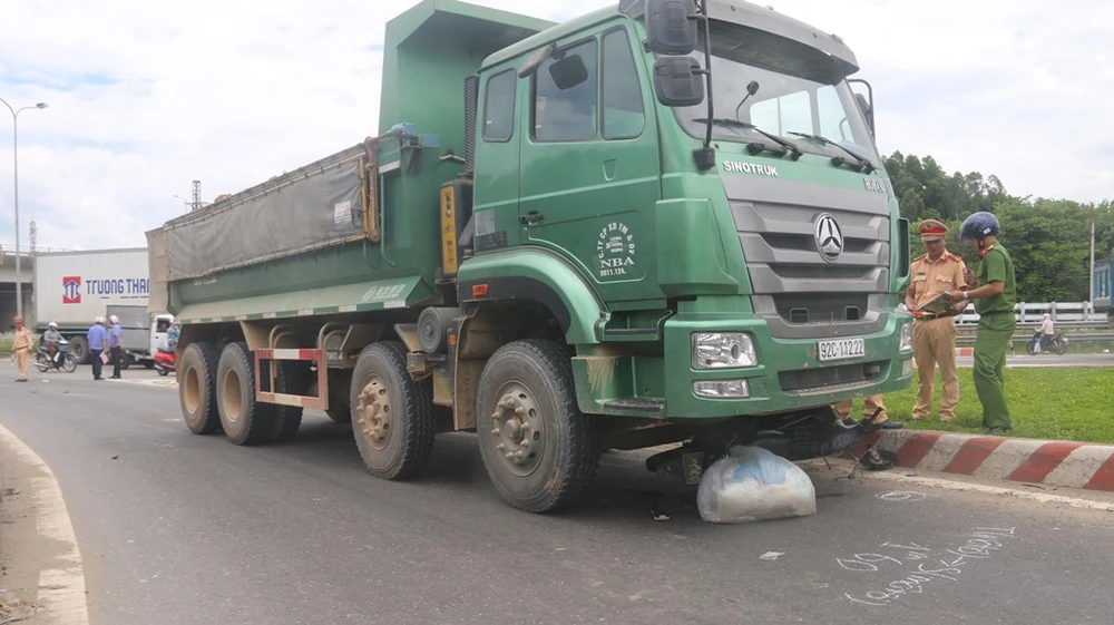 Chiếc xe tải chở đất này đã cướp đi sinh mạng của mẹ con em Đô ngày 4-8-2017. Ảnh: N.TRI