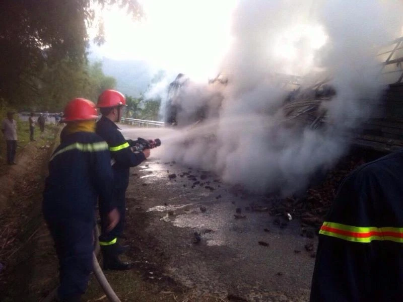 Tài xế cho xe dừng lại dập lửa. Tuy nhiên, ngọn lửa nhanh chóng bao trùm cả chiếc xe. Cảnh sát PCCC tỉnh Quảng Ngãi đã điều động 2 xe chữa cháy cùng 20 cán bộ chiến sĩ có mặt tại hiện trường để xử lý đám cháy.