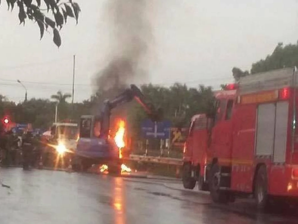 Tuy nhiên, việc dập lửa gặp khó khăn, lực lượng chữa cháy phải kéo chiếc xe bị cháy ra sân vận động để tập trung dập tắt đám cháy, giải tỏa tuyến đường cho các phương tiện lưu thông.