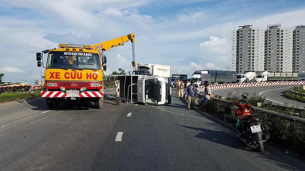 Cuối giờ chiều ngày 18-7, xe tải loại 2,2 tấn chở dung dịch thuốc y tế biển số TP.HCM, chạy trên đường Võ Trần Chí hướng từ đường Trần Đại Nghĩa ra quốc lộ 1. Khi xe đang đổ dốc tại khúc cua cầu vượt nút giao Tân Tạo (quận Bình Tân) thì bị lật ngang, trượt dài gần 10 mét mới dừng lại.