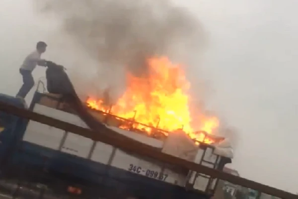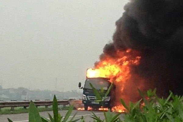 Vào thời điểm trên, chiếc xe tải mang BKS 34C-099.67 chở theo số lượng lớn hàng hóa, đang lưu thông theo hướng Bắc Ninh - Nội Bài, đến đoạn đường này thì bất ngờ bốc cháy.