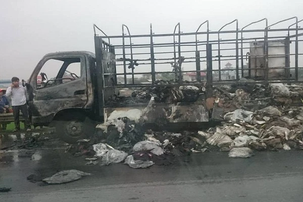 Toàn bộ số hàng hóa bị cháy rụi, chiếc xe cũng bị hư hỏng nặng
