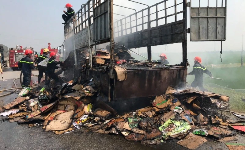 Gần 30 phút sau đám cháy đã được dập tắt, tuy nhiên toàn bộ giấy carton trên thùng xe đã bị cháy, hư hỏng.