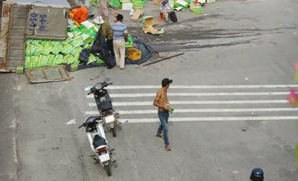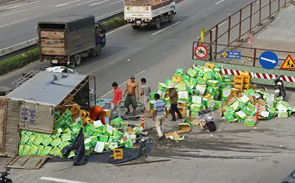 Ngoài ra còn có những đối tượng xăm trổ đầy mình thấy tài sản nằm lăn lóc trên đường đã chạy xe máy đến rồi xông vào hiện trường, cướp đi nhiều thùng nước ngọt mặc dù tài xế cố ngăn cản.