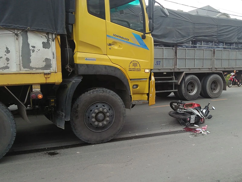 Cú va chạm khiến hai vợ chồng ngã xuống đường, bị xe tải kéo lê một quãng. Phát hiện sự việc, tài xế dừng xe cùng người dân dừng lại và lùi phương tiện để đưa nạn nhân đi cấp cứu.