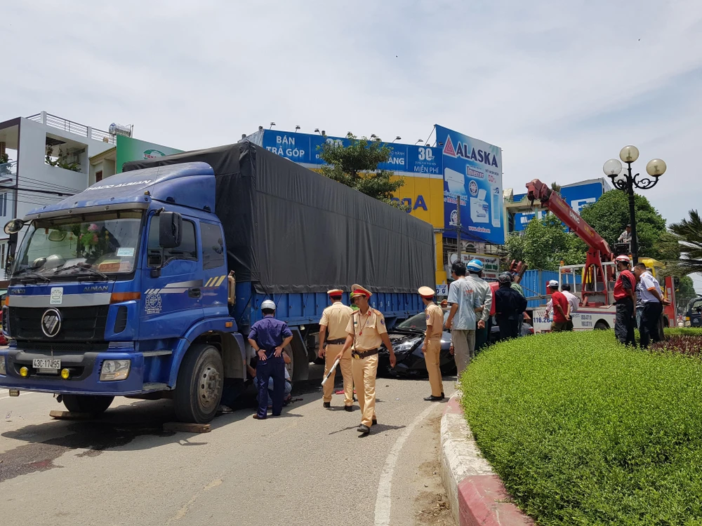 Nhận được tin báo, lực lượng chức năng có mặt kịp thời xử lý hiện trường, phân luồng giao thông.