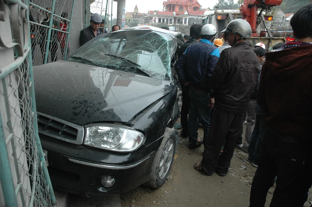 Hậu quả, chiếc xe con hư hỏng gần như hoàn toàn, rất may tại thời điểm xảy ra tai nạn, trong xe con không có người.