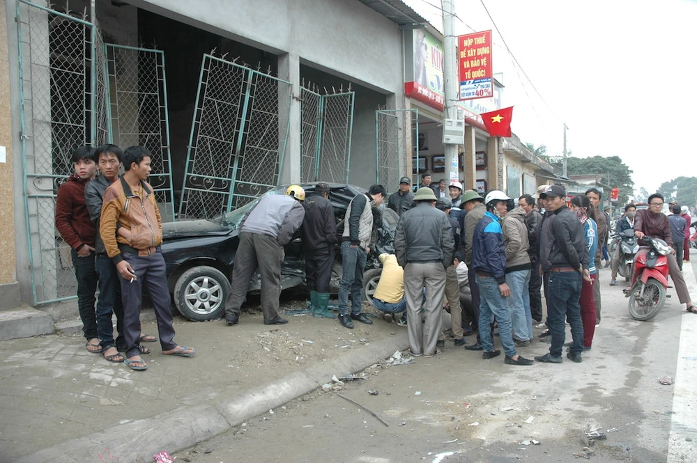 Vào thời gian trên, chiếc xe tải mang biển BKS 37C-004.41 (chưa xác định danh tính lái xe) đang lưu thông hướng Quỳnh Lưu - TX Hoàng Mai, khi đến km nói trên thì bất ngờ tài xế mất lái tông vào đuôi xe con 4 chỗ mang biển BKS 37A-106.81 đang đỗ trên vỉa hè.