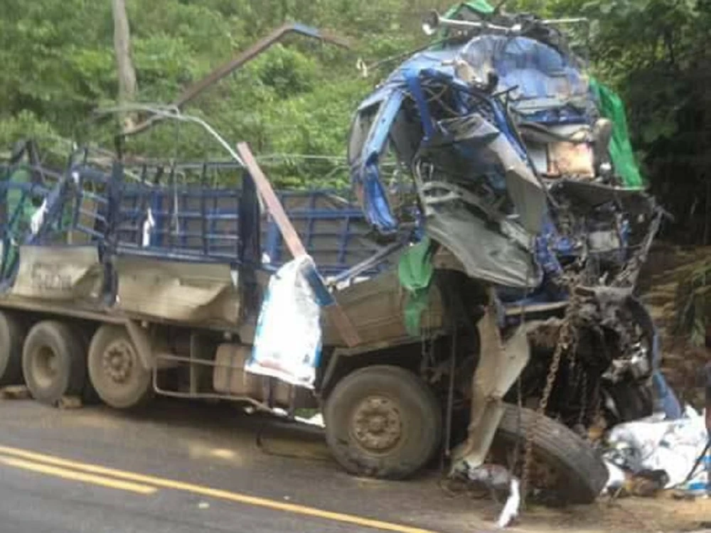 Chiếc xe tải biến dạng sau khi tông vào vách núi, khiến 2 người tử vong
