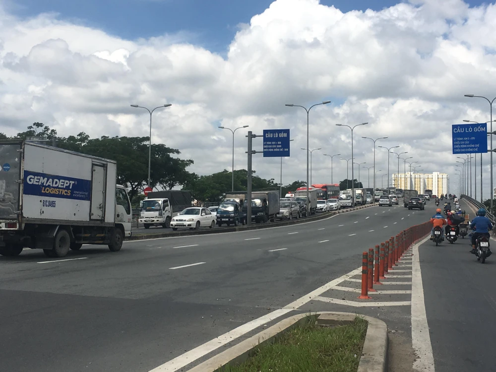 Các phương tiện xếp hàng dài trên cầu Lò Gốm.