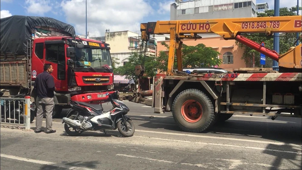 10 giờ, một xe cứu hộ được điều đến hiện trường để xử lý vụ việc. Tuy nhiên, mất khoảng 30 phút sau thì việc ráp nối xe tải với xe cứu hộ mới hoàn tất, tình trạng ùn tắc trên đường Võ Văn Kiệt mới được giải quyết.