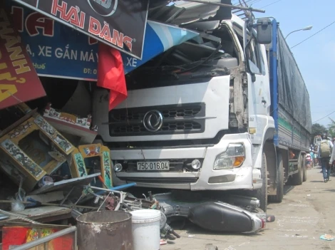 Tại hiện trường vụ tai nạn, sau cú va chạm mạnh, hai ngôi nhà số 14, 16 bị hư hại nặng khi mái hiên bị vỡ nát, tài xế xe tải và hai hành khách là ông Nguyễn Hữu Hòa (40 tuổi) và chị Lê Thị Kim Thủy (37 tuổi) vợ ông Hòa, cùng chủ nhà số 16 bị thương nặng.