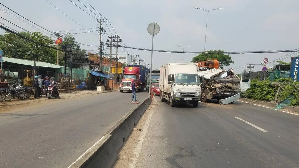 Tại thị xã Dĩ An (Bình Dương) trưa 6-2 đã xảy ra tai nạn giữa xe tải cẩu và container.