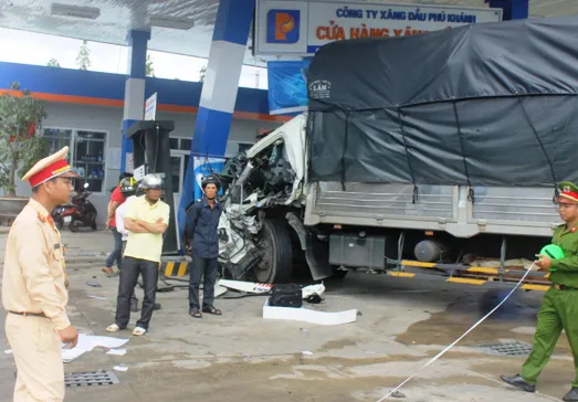 Sáng 8-4, trên quốc lộ 1 đoạn qua thị trấn Cam Đức, huyện Cam Lâm (Khánh Hòa) xảy ra vụ tai nạn giữa xe tải 76C- 07782 và xe khách 78A- 02370 đều lưu hành cùng chiều hướng bắc- nam. Theo một số người chứng kiến, sau khi tông nhau với xe khách, chiếc xe tải tiếp tục đâm vào một trạm xăng ven đường.