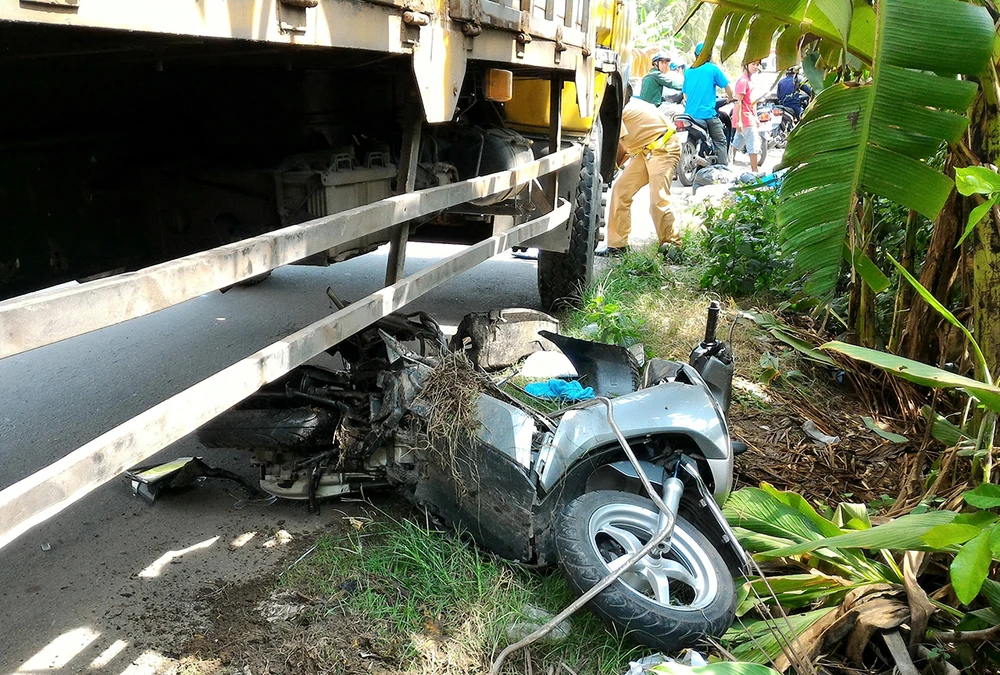 Trưa 21-11, ông Nguyễn Trường Ninh (ngụ phường An Lạc, quận Bình Tân, TP.HCM) chở vợ trên xe máy hướng từ miền Tây về TP.HCM. Khi đến ngã tư Lương Phú (xã Thân Cửu Nghĩa, huyện Châu Thành) thì bị xe tải tông vào.