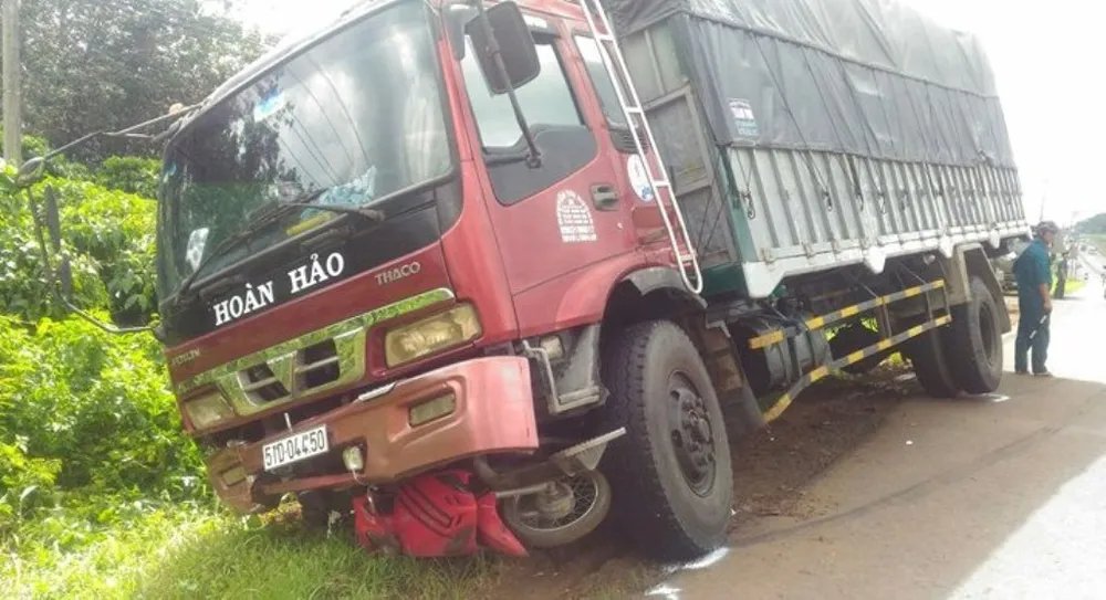 Cú đâm mạnh làm xe tải cuốn chiếc xe máy lọt vào gầm, kéo lê đi hơn 20 m rồi rớt xuống mương nước, xe lật nghiêng. Bà Oanh và chị Thảo văng xuống bên đường bị thương, trong đó chị Thảo nguy kịch phải đưa đi cấp cứu ở BV Chợ Rẫy, xe máy hư hỏng nặng.