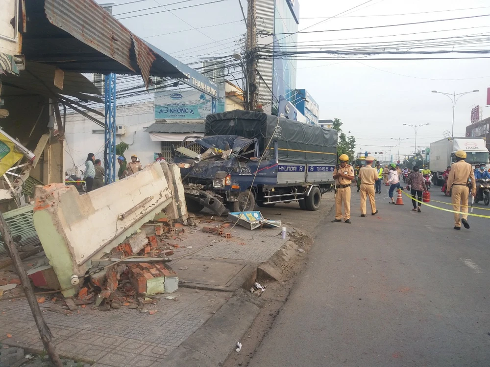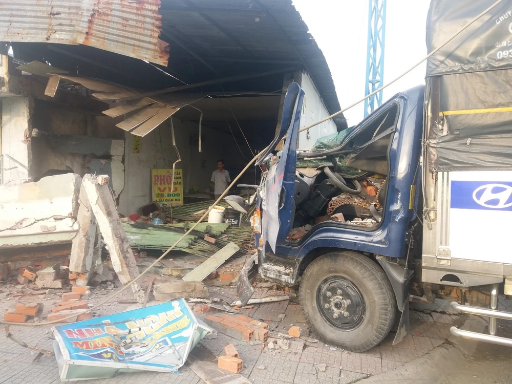 Khi đi tới đoạn qua phường 6, TP Mỹ Tho, xe tải bỗng mất lái, lao vào một quán phở ven đường.