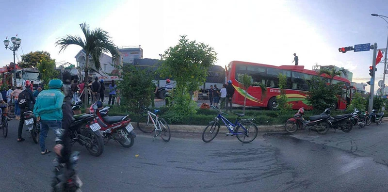 Vụ tai nạn gây ùn tắc giao thông. Ảnh: CAO MINH