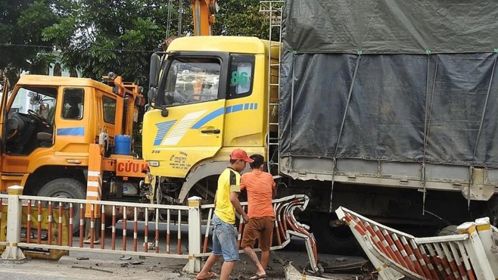 Hậu quả, khoảng hơn 20 m dải phân cách bằng thép bị san phẳng, phần đầu của xe tải bị hư hỏng nghiêm trọng, tài xế may mắn không bị thương.