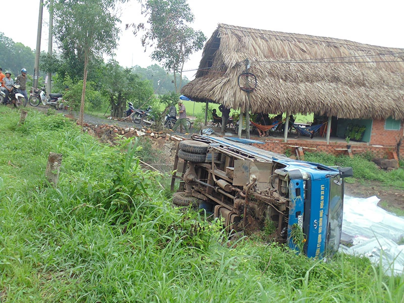 Xe tải chở nước đá chạy hướng từ thị trấn Châu Thành, Tây Ninh đi xã Thành Long, Châu Thành, Tây Ninh, đến khu vực ấp Xóm Ruộng, xã Trí Bình, Châu Thành, cách cầu Bến Sỏi khoảng 1 km thì xe bị mất lái lao xuống ruộng. Toàn bộ nước đá văng ra khỏi xe. Hậu quả tài xế chỉ bị xây xước nhẹ.