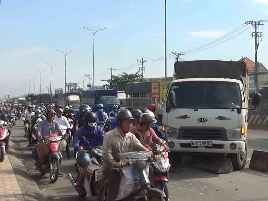 Vụ việc khiến giao thông trên quốc lộ 1 ùn tắc nghiêm trọng.