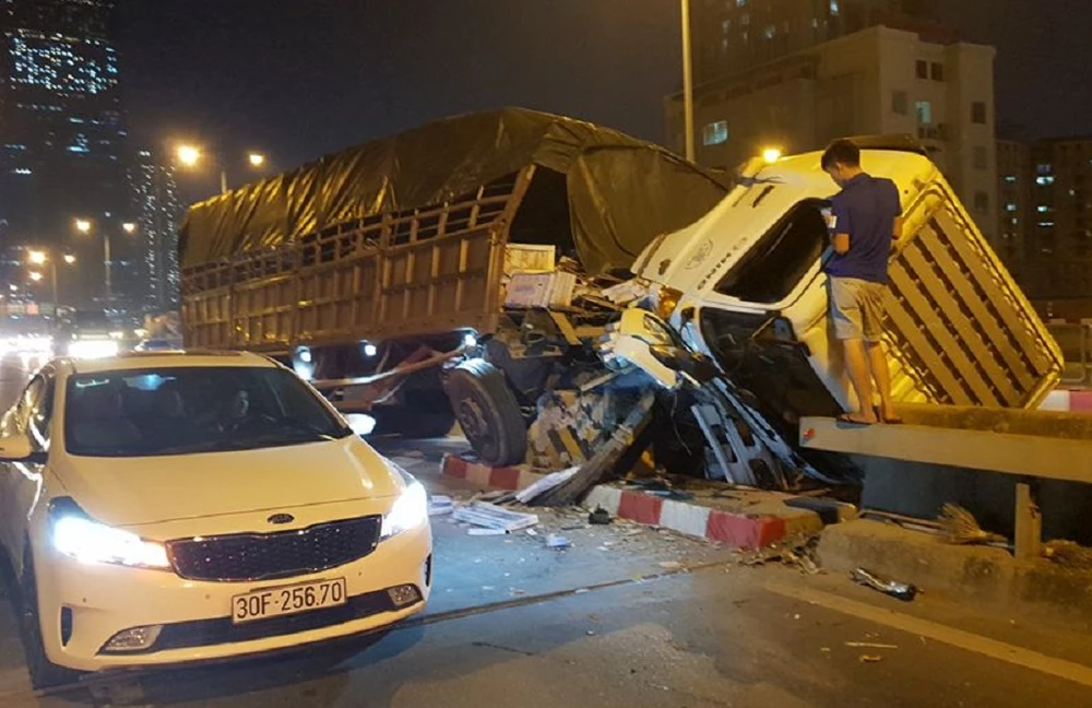 Vụ tai nạn giao thông xảy ra vào khoảng 21 giờ ngày 12-7, tại đường trên cao vành đai 3 trên cao đoạn lối xuống BigC-đại lộ Thăng Long qua địa bàn quận Cầu Giấy, Hà Nội.