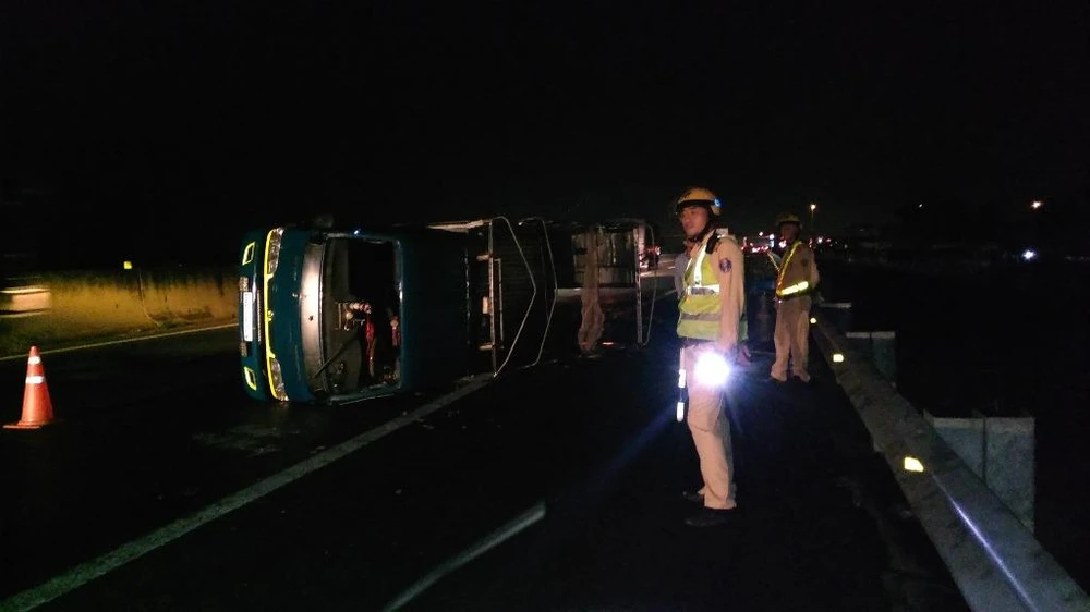 Xe này khi qua địa bàn thuộc xã Lợi Bình Nhơn, TP Tân An (Long An) thì bất ngờ bị nổ vỏ sau phía bên tài. Tiếp đó xe bị chao đảo liên hồi, quay 180 độ rồi lật ngang trên đường cao tốc.