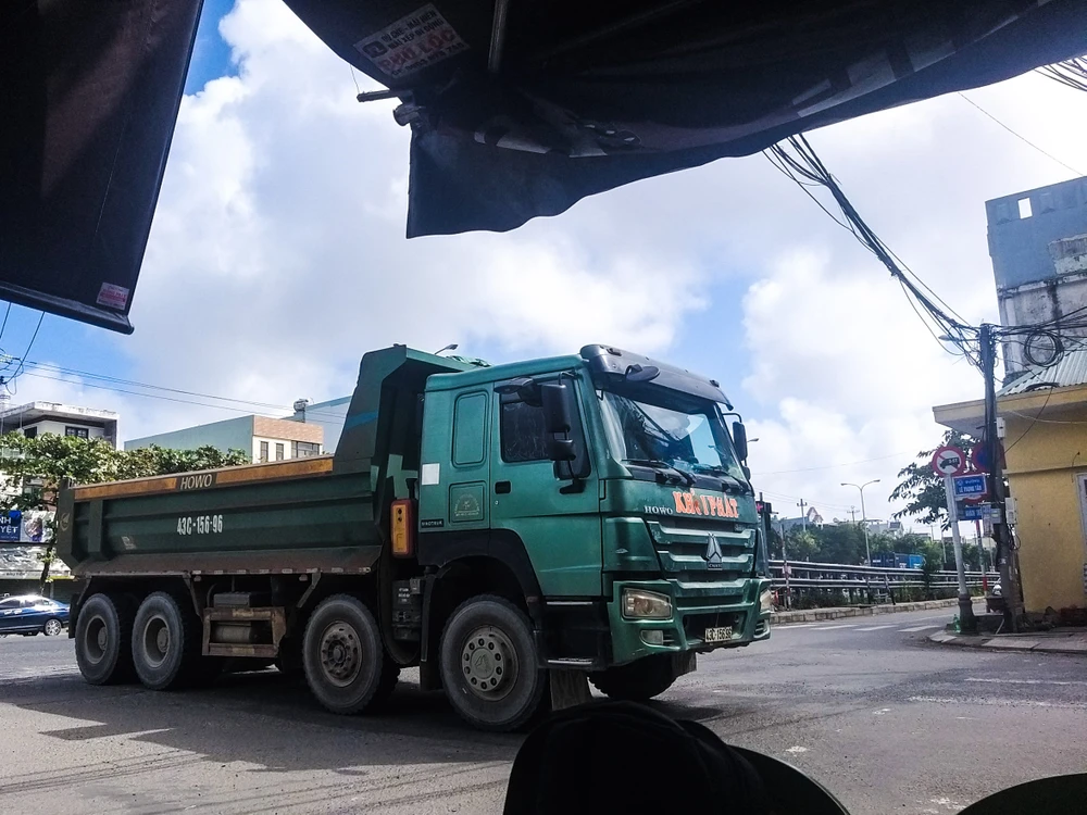 Xe ben mang biển số 43C-156.96 trên đường Lê Trọng Tấn vào giờ cấm lưu thông. PV PLO chụp vào lúc 12 giờ 37, ngày 24-11. Ảnh: BÙI TOÀN