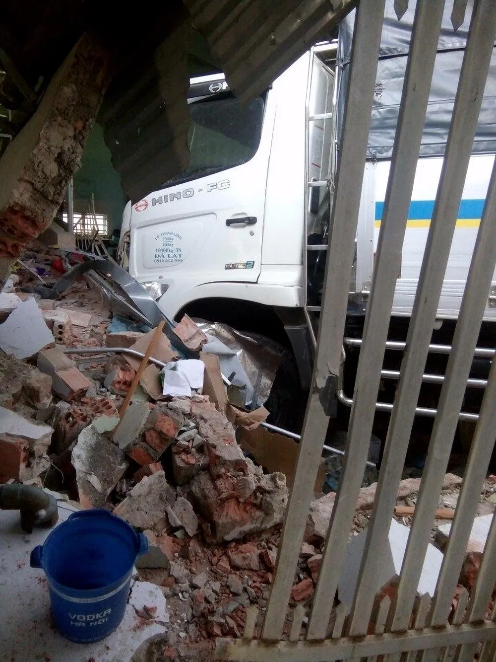 Xe tải tông thẳng vào tiệm tạp hóa.