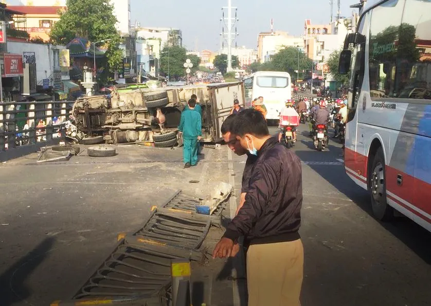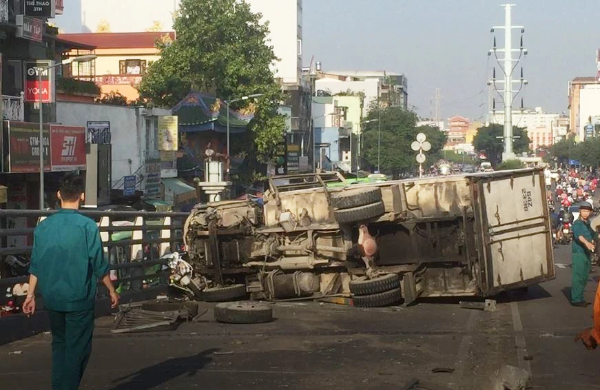 Thông tin ban đầu, rạng sáng 27-9, xe tải mang biển số TP.HCM di chuyển trên cầu vượt Cây Gõ, hướng về Bến xe Miền Tây. Lúc xuống dốc cầu, chiếc xe này bất ngờ mất lái lao thẳng vào dải phân cách.