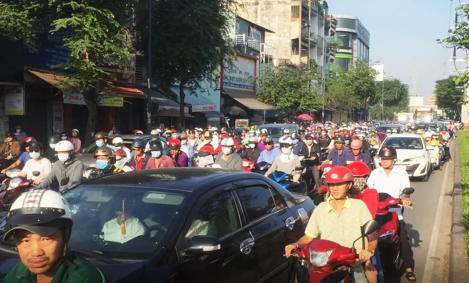 Tại hiện trường, ba chiếc xe máy hư hỏng nặng, xe chiếc xe tải lật ngang trên đường chiếm hết một hướng lưu thông trên cầu vượt Cây Gõ, giao thông qua khu vực này bị ùn tắc nghiêm trọng.