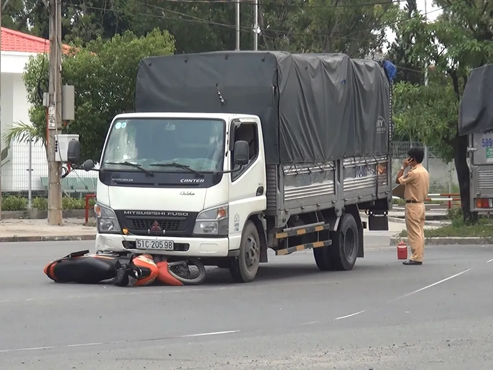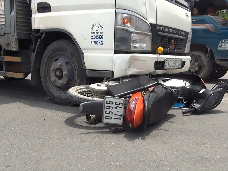 Cú đâm mạnh khiến nữ công nhân bị hất văng xa ra, bị thương nặng, bất tỉnh. Riêng xe máy bị cuốn vào gầm xe tải, hư hỏng.