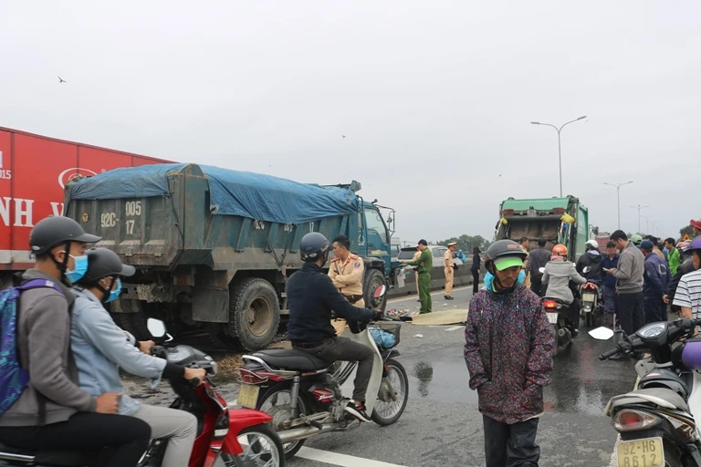 Trong lúc này, xe tải chở cát mang BKS 92C-005.17 đi cùng chiều, tài xế xe này không thắng kịp đã tông vào đuôi xe chở rác phía trước. Cú tông mạnh khiến công nhân nói trên tử vong tại chỗ. Đầu xe tải bị hư hỏng nghiêm trọng.