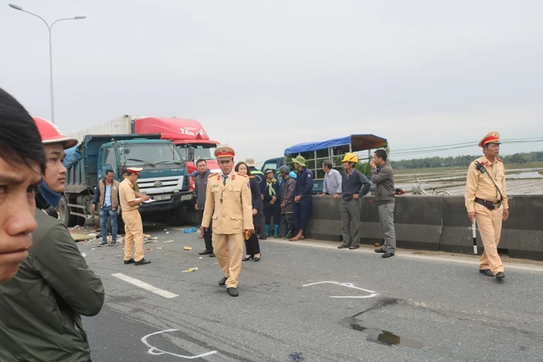 Cảnh sát giao thông trạm Thăng Bình và Công an Thăng Bình đã có mặt để ghi nhận hiện trường, điều tiết giao thông.