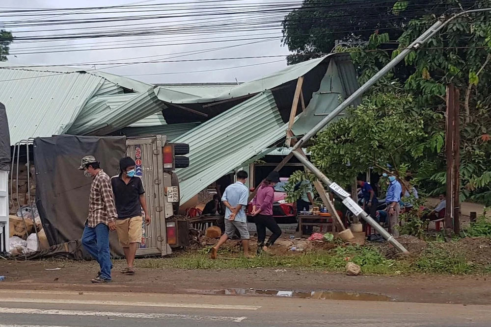 Cú tông mạnh khiến toàn bộ lều bạt của chốt kiểm soát bị tông đổ sập. Chiếc xe tải chỉ chịu dừng lại khi tiếp tục lao vào phía trong, tông sập 1 quán ăn của nhà dân, nằm lật nghiêng trong quán.