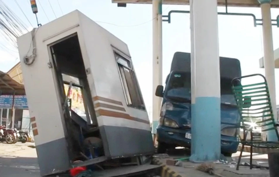 Cú tông mạnh làm cabin quầy bán vé văng qua làn đường dành cho xe hai bánh. Xe tải chỉ dừng lại sau khi leo lên dải phân cách, tông vào cột trạm thu phí. Hệ thống điện tại đây ngừng hoạt động. Chiếc xe tải bị hư hỏng phần đầu do va chạm mạnh, nhiều vết dầu từ xe tải đổ chảy ra đường.
