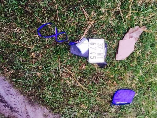 Tại hiện trường vụ tai nạn thương tâm, biển số xe máy và bảng tên công nhân bị rơi xuống bên quốc lộ 46B (đoạn qua xã Nam Giang, huyện Nam Đàn).