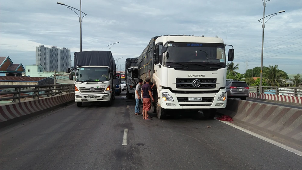 Rạng sáng 8-6, xe tải 66C-058.87 chạy trên quốc lộ 1 hướng từ An Lạc về An Sương. Khi xe đang lên dốc cầu vượt hương Lộ 2 thì đâm thẳng vào đuôi xe tải 61C-193.44 dừng đỗ trên cầu do sự cố máy móc.