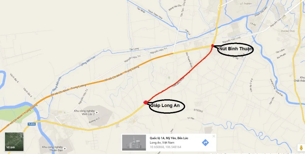 Đoạn quốc lộ 1, từ nút giao thông Bình Thuận đến ranh tỉnh Long An dài khoảng 5,7 km. Ở đoạn này, mặt đường rộng khoảng 25 m, có sáu làn xe (mỗi ba làn xe, trong đó có một làn dành cho xe hai bánh).