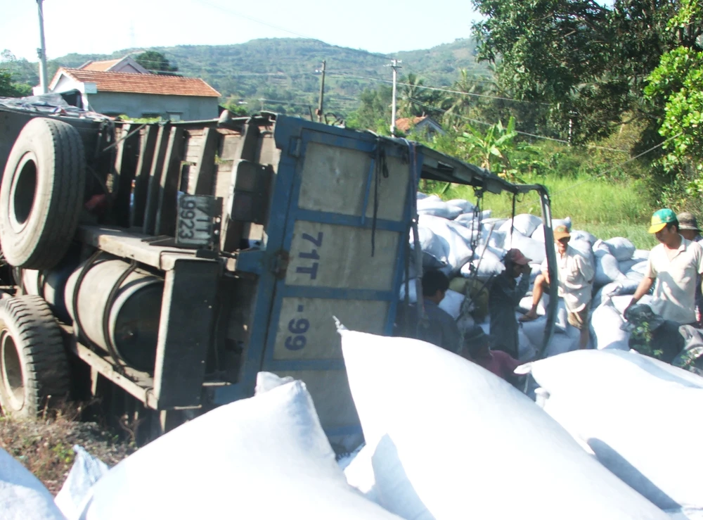 Rạng sáng 3-3, xe tải 71T- 9923 do tài xế Đặng Cao Phong (55 tuổi, ngụ xã Mỹ Thành An, TP Bến Tre) điều khiển, chở gần 20 tấn than bột từ Hà Nội đi TP.HCM trên quốc lộ 1, khi lên lưng chừng đèo Quán Cau thuộc thôn Phú Tân, xã An Cư, huyện Tuy An (Phú Yên) thì bị tuột dốc. Ngay sau đó, chiếc xe bị lật nhào xuống hố sâu gần 3m bên phải đường.