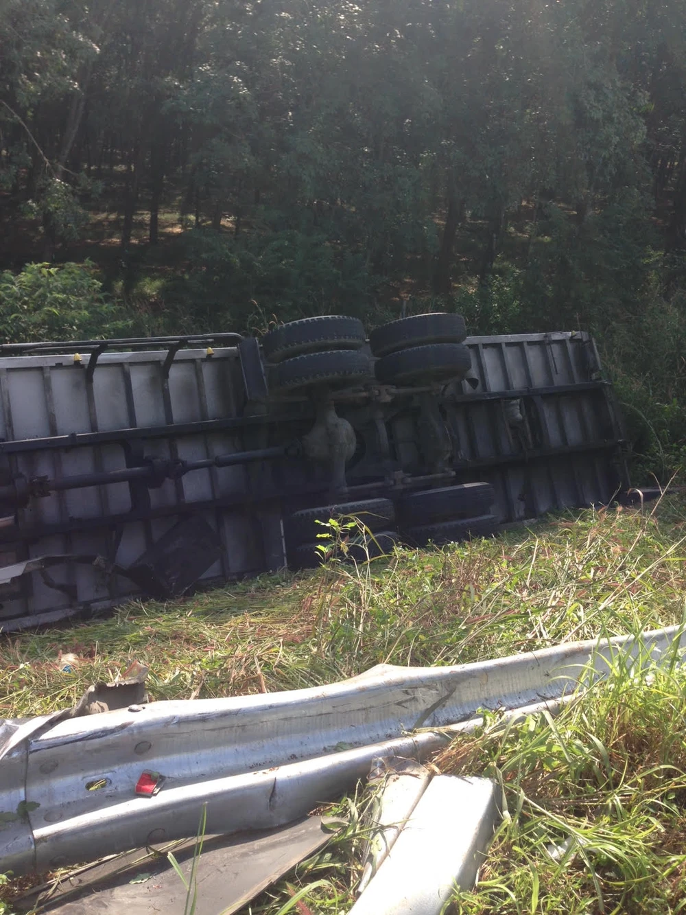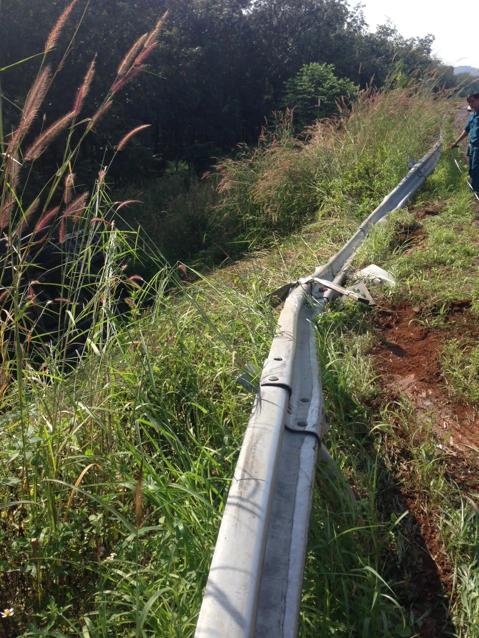 Ghi nhận ban đầu tại hiện trường: xe tải lật hẳn xuống mái taluy, tài xế bị thương nhẹ. Tài sản hư hỏng gồm năm tấm hộ lan, bốn trụ, bốn tấm đệm…