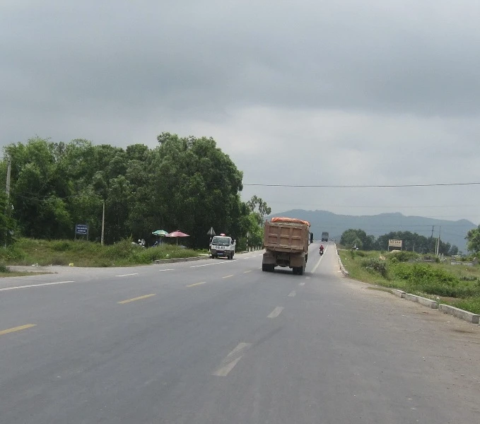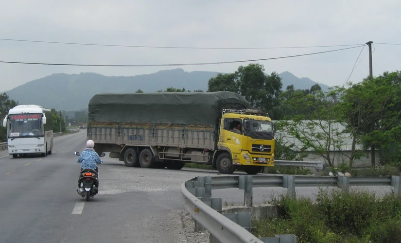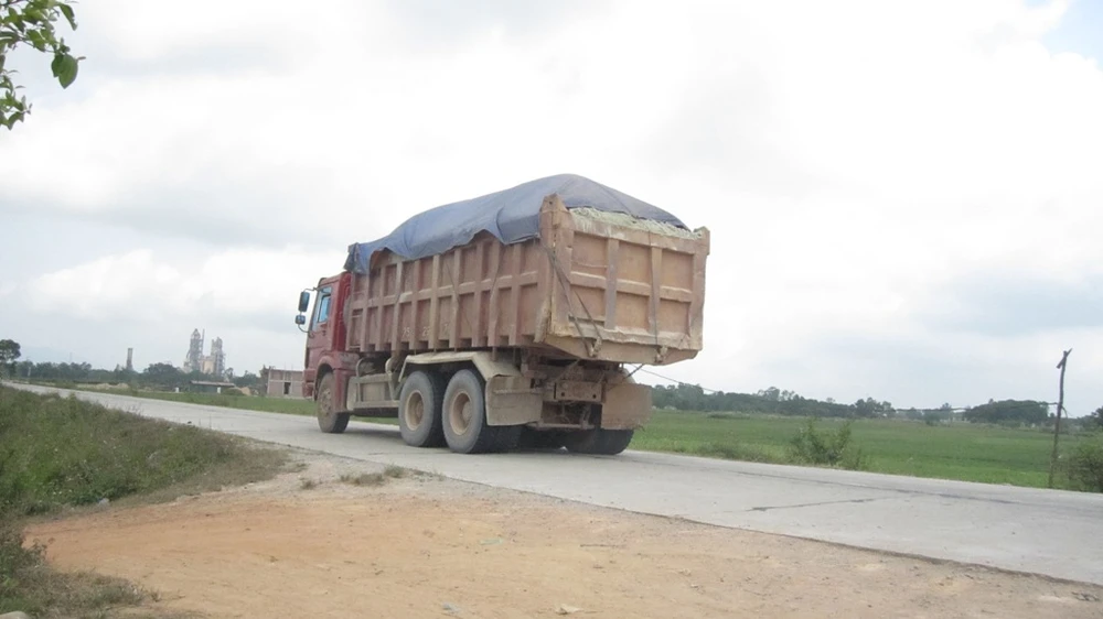 Xe tải 75K – 0157 đi vòng từ đường nội thi ra quốc lộ 1A để trạm cân. Ảnh: VIẾT LONG