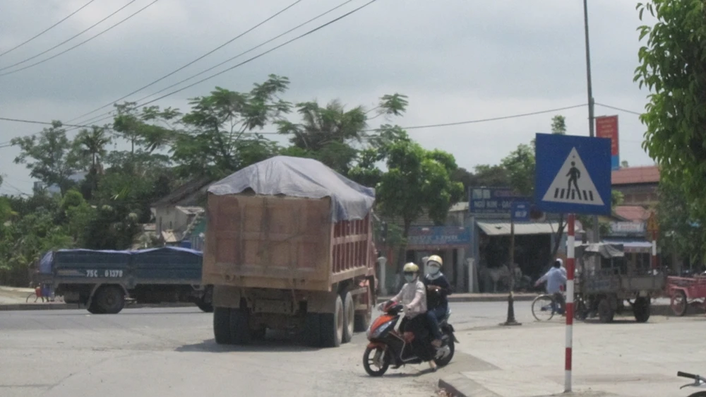 Lần lượt các xe tải 43X-3047, 43C-03137, 75K-2976… rẽ vào đoạn đường trên để né trạm. Đặc biệt, các xe chở đất đá với khối lượng lớn để thi công mở rộng đường quốc lộ 1A đoạn qua thị xã Hương Trà lại liên tiếp đi đường vòng để né trạm. Khi đã xả sạch đất, đá trên thùng xuống các xe này mới ngang nhiên chạy qua trước trạm cân.