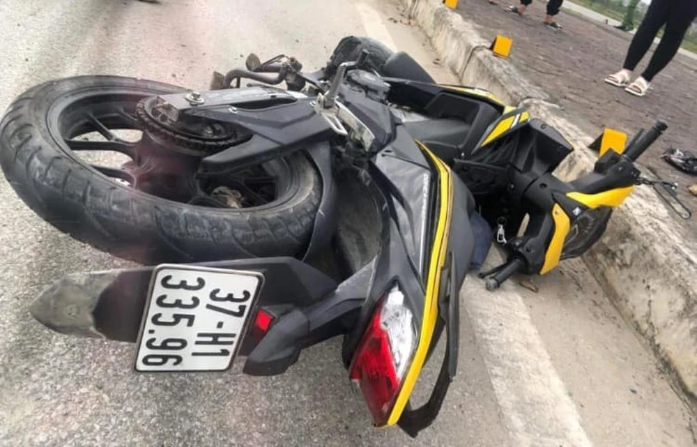Chiếc xe máy tại hiện trường trong vụ tai nạn.