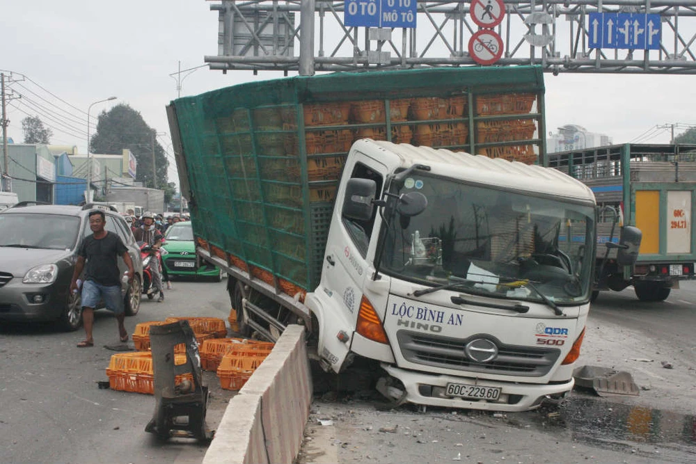 Theo thông tin ban đầu, vào thời điểm trên xe tải biển số 60C-229.60 đang chở gà đi trên quốc lộ 1A theo hướng từ TP Biên Hòa ra cầu Đồng Nai. Khi đang đổ dốc cầu thì bất ngờ bị xe container kéo theo thùng hàng loại 40 feet đi cùng chiều vượt lên va chạm khiến xe tải đâm thẳng vào dải phân cách bê tông giữa làn đường. Riêng xe container, sau cú va chạm, tài xế bị mất lái tông thẳng vào dải phân cách rồi lật nhào. Vụ tai nạn khiến tài xế container bị thương.
