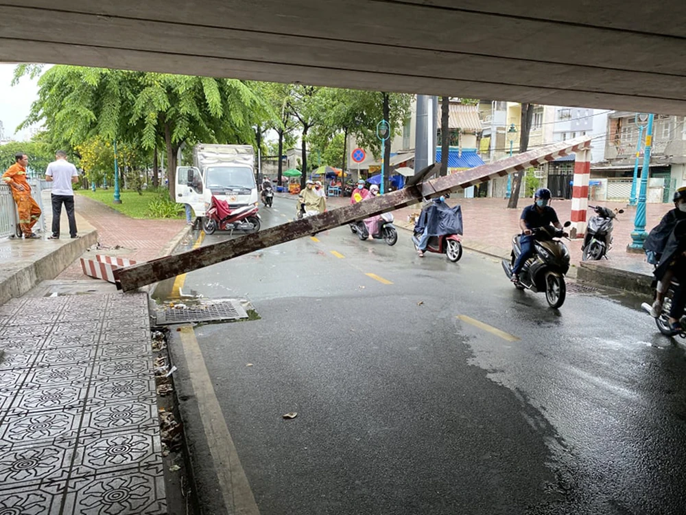 Cú va chạm giữa thùng xe tải và thanh giới hạn chiều cao khiến thanh này đổ sập, ngã ra giữa đường, một trụ của thanh chắn gãy hoàn toàn. Vụ việc khiến giao thông trên đường Trường Sa ùn tắc cục bộ. Phần thùng xe tải bị hư hỏng nhẹ.