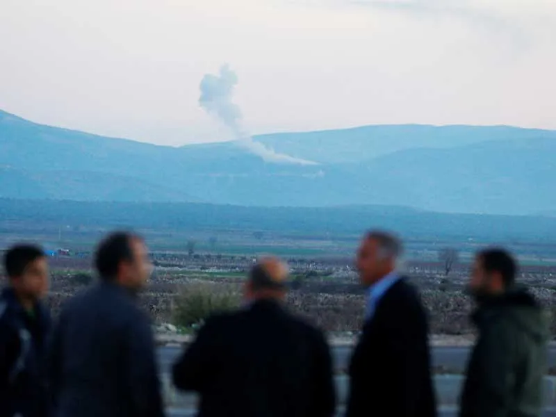 Khói bốc lên từ khu vực Afrin khi Thổ Nhĩ Kỳ tấn công các mục tiêu người Kurd ở Syria hôm 20-1. Ảnh: REUTERS