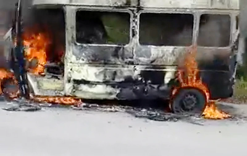 Do đây là đoạn đường xa nhà dân và đồi núi nên không có nước để dập lửa, mọi người đều bất lực trước đám cháy. Người thân đang ôm tro cốt của người quá cố lên chiếc xe khác trở về nhà làm lễ.