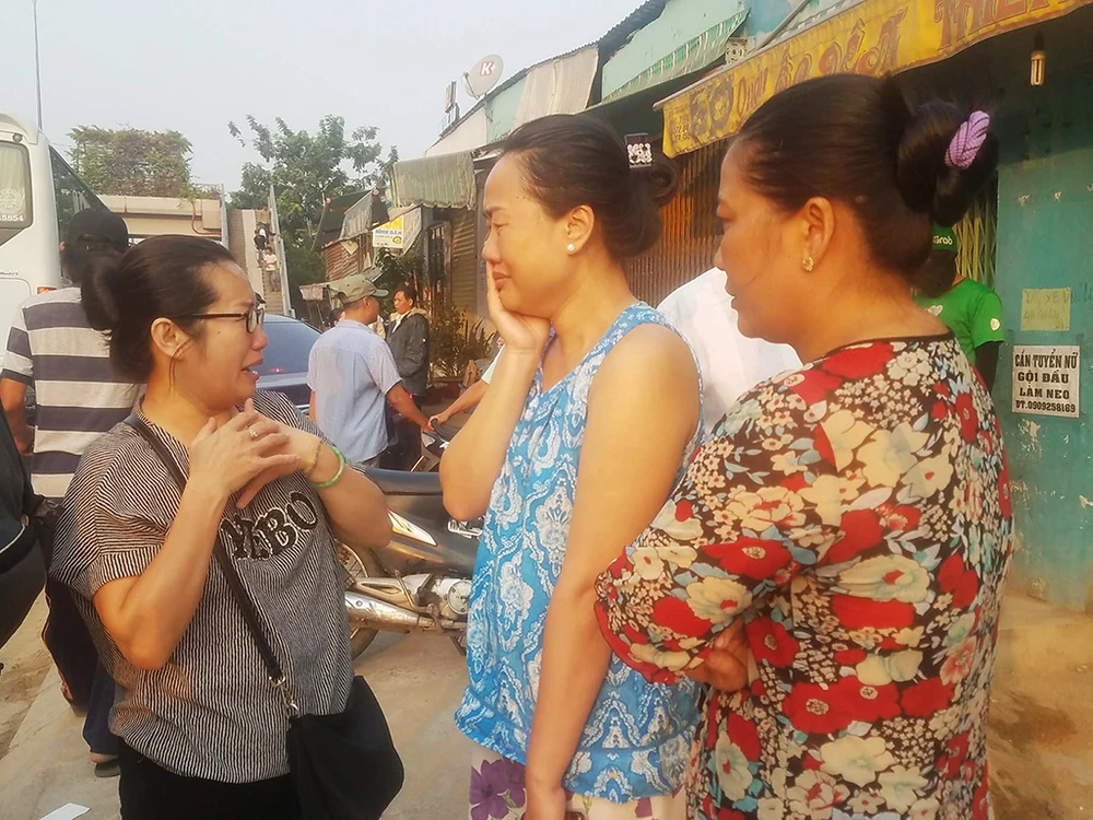 Lúc này, những cư dân chung cư cũng đến tiễn đưa những hàng xóm lần cuối. Nhiều gương mặt nhòe nước mắt. Trong khi đó một người phụ nữ lớn tuổi bận đồ đen khóc nấc lên “về nhà rồi con ơi!” – bà là ruột thịt của những người vừa mất.